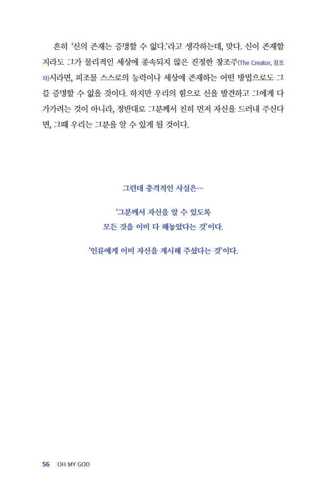 인류에게 궁극의 질문이자 무엇보다도 중요한 이 질문을 다룬 '오 마이 갓' 시리즈는 우리가 신(神, God)이라고 일컫는 그 미지의 존재에 대한 진실을 전해주기 위해 쓰인 책이다.